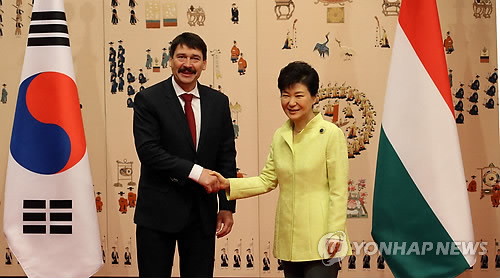 앞서 박 대통령은 14일 청와대에서 야노쉬 아데르 헝가리 대통령과 정상회담을 열고 "(북한이) 핵무장과 경제성장 병진정책이 결코 성공할 수 없다는 것을 하루빨리 깨닫고 헝가리의 성공적인 체제전환 경험을 본받길 기대한다"고 말했다.