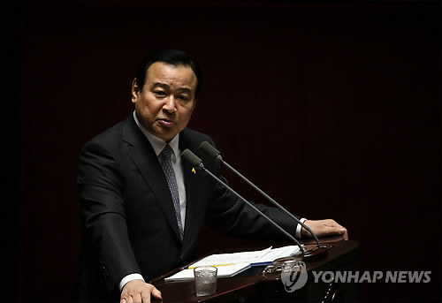 | △ 국회 답변하는 이완구 (서울=연합뉴스) 진성철 기자 = 이완구 국무총리가 15일 국회 본회의에서 진행된 경제분야 대정부질문에서 성완종 전 경남기업회장으로부터의 금품수수 의혹에 대한 질의에 답변하고 있다. |