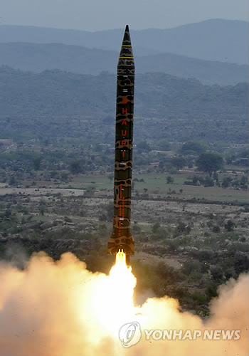 (뉴델리=연합뉴스) 나확진 특파원 = 파키스탄은 15일(현지시간) 핵탄두 탑재가 가능한 중거리 탄도미사일 가우리를 시험발사했다.