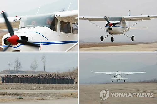 | △ 북한 노동당 기관지 노동신문은 지난 1일 김정은 국방위원회 제1위원장이 군수기계공장을 방문해 새로 제작한 경비행기의 시험 비행을 참관한 데 이어 직접 경비행기에 올라 이·착륙 시험 비행을 진행했다고 밝혔다.<<연합뉴스DB >> |