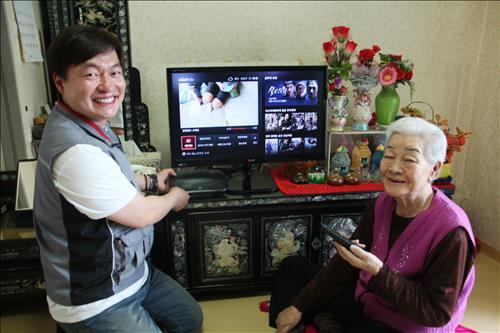 KT는 면사무소와 협력해 이 지역 노인 대상으로 '올레 TV 안부 알리미'를 무료로 설치 운영한다. 복지관과 손잡고 생활 관리사가 노인 안부를 직접 확인하고 보살피도록 했다.