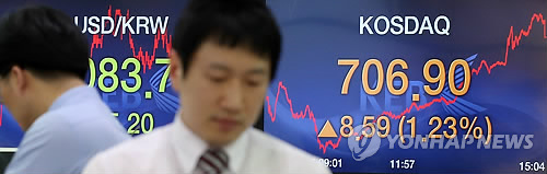 코스닥지수는 전날보다 8.59포인트(1.23%) 오른 706.90으로 장을 마쳤다. 코스닥이 종가 기준으로 700선을 돌파한 것은 2008년 1월 10일의 713.36 이후 처음이다.