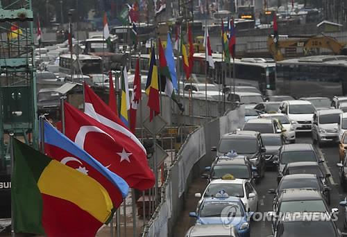 | △ 아시아-아프리카 회의가 열리는 인도네시아 자카르타 시내에 참가국들의 국기가 걸려있다. (AP=연합뉴스) |