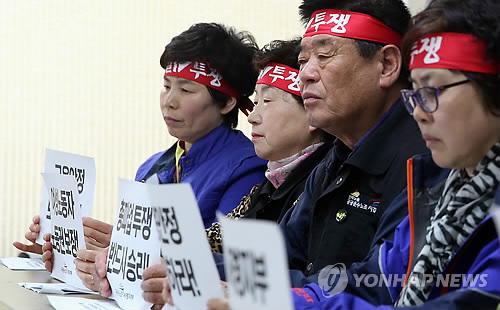 전북본부는 이날 노조 중회의실에서 열린 총파업 선언 기자회견에서 "전북지역 전체 조합원 3만3천명 중 2만3천400명이 파업에 참여하기로 했다"며 "높은 참여율은 서민과 노동자의 삶이 벼랑 끝에 내몰려 있다는 증거"라고 주장했다.