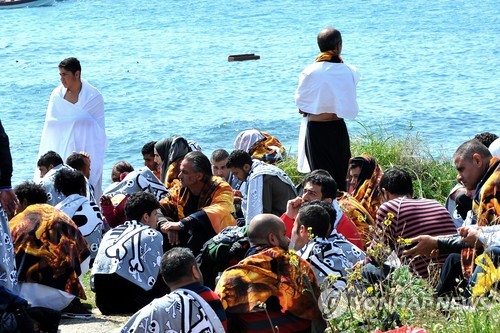 | △ 난민선을 타고가다 그리스 남동부 에게해의 로데스 섬 앞 바다에서 구조된 난민들 (AP=연합뉴스) |