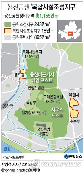 국토교통부는 용산공원 복합시설조성지구 중 유엔사 부지 5만1천753㎡에 대한 조성계획을 승인, 23일 고시한다고 22일 밝혔다.