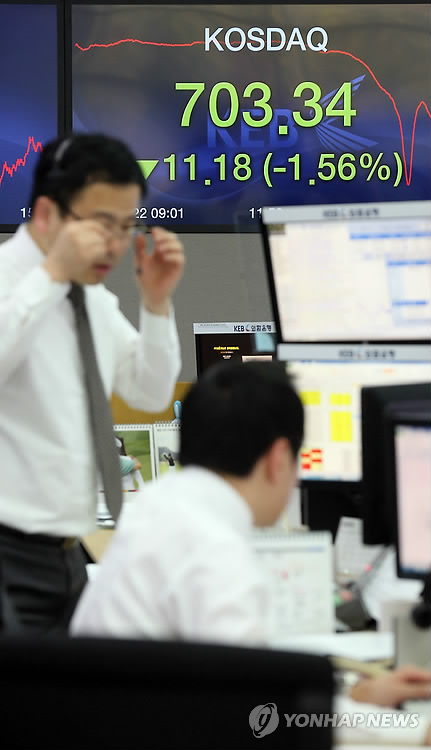 코스닥지수는 전날보다 11.18포인트(1.56%) 내린 703.34로 장을 마감했다.