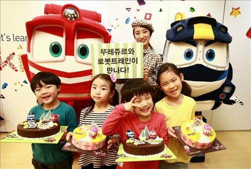 (서울=연합뉴스) 이유미 기자 = 뚜레쥬르는 어린이날을 앞두고 애니메이션 '로봇트레인' 캐릭터를 담은 케이크를 출시했다고 23일 밝혔다.
