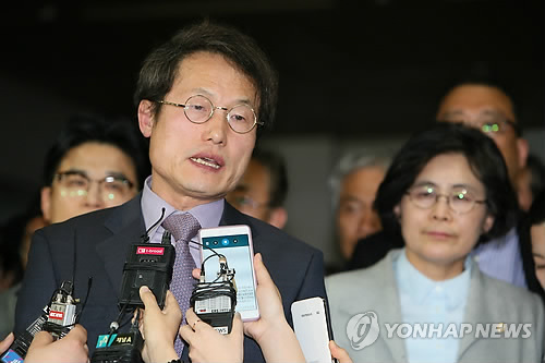 | △ 조희연 서울시교육감 기자회견 (서울=연합뉴스) 박지호 기자 = 지난해 서울시 교육감 선거에서 상대 후보인 고승덕 변호사의 미국 영주권 보유의혹을 제기한 혐의로 기소된 조희연 서울시교육감이 23일 오후 서초동 서울중앙지법에서 열린 국민참여재판 1심 선고공판에서 유죄판결을 받은 뒤 기자회견을 하고 있다. |