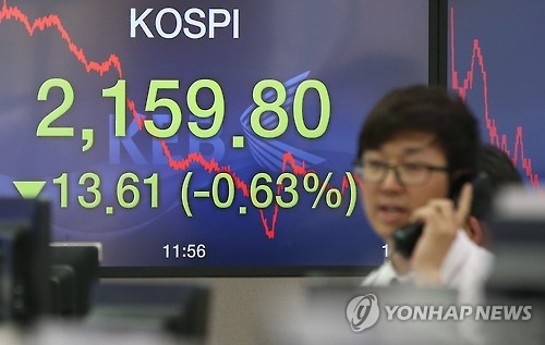 | △ 코스피, 기관·개인 차익실현에 '출렁'…2,150대로 밀려 (서울=연합뉴스) 한종찬 기자 = 코스피가 단기 급등에 따른 부담과 차익 실현에 나선 투자자들의 매도 물량으로 2,150선대로 밀렸다. 24일 코스피는 전날보다 13.61포인트(0.63%) 내린 2,159.80으로 마감했다. 사진은 이날 오후 서울 중구 외환은행 본점 딜링룸. |