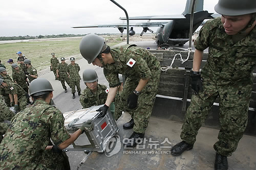 | △ 2010년 8월 일본 자위대가 파키스탄 홍수 구호지원하는 모습(AP.연합뉴스.자료사진) |