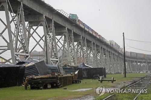 역시 시속 113㎞의 강풍이 불어 닥친 뉴올리언스에서는 도로 위를 달리던 차량이 전복되고 컨테이너를 가득 실은 열차가 엿가락처럼 휘어진 철로에서 탈선했다.