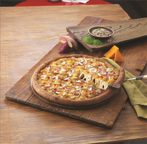 현미·흑미·보리·백태·율무 등 15가지 국산 곡물로 만든 이른바 '웰빙 도우' 위에 치즈, 고구마 무스, 아몬드 슬라이스 등을 얹었다는 게 도미노피자의 설명이다.
