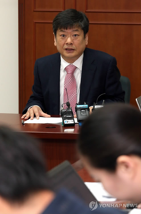| △ 2017학년도 대입전형 시행계획 브리핑 (세종=연합뉴스) 배재만 기자 = 교육부 김경모 대학입학지원실장이 29일 정부세종청사 교육부 소회의실에서 전국 197개 4년제 대학교의 2017학년도 대입전형 시행계획에 대해 사전 브리핑하고 있다. |
