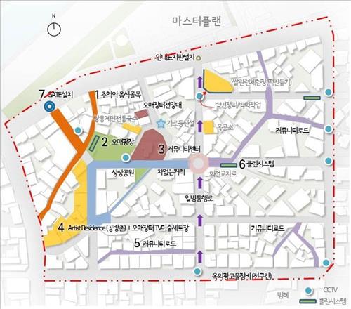 기본설계안을 보면 정비구역 내 도로를 정비하고 추억의 음식골목, 오매광장, 커뮤니티센터, 전망대, 공방촌(아티스트 레지스던스), TV미술세트장, 음식골목 등이 조성된다.