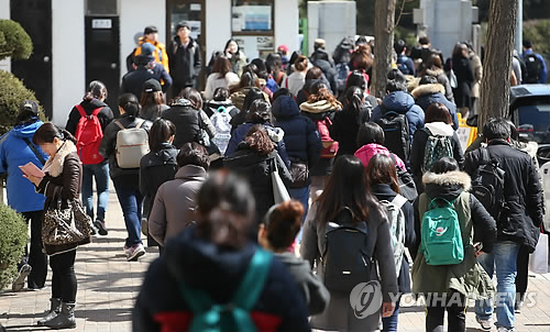 | △ 9급 공무원 임용 필기시험을 치른 수험생들이 교정을 나서고 있다. (연합뉴스 자료사진) |