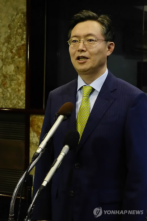 | △ 황준국 외교부 한반도평화교섭본부장 (워싱턴=연합뉴스) 김세진 특파원 = 북핵 6자회담의 우리 측 수석대표인 황준국 외교부 한반도평화교섭본부장이 5일(현지시간) 워싱턴DC의 주미한국대사관에서 방미 성과에 대한 기자들의 질문에 답하고 있다. 2015.5.6. smile@yna.co.kr |