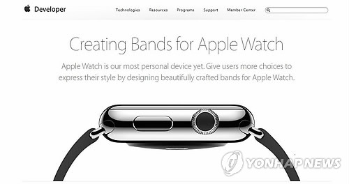 | △ 애플 워치용 밴드 제3자 제조 허용 (샌프란시스코=연합뉴스) 임화섭 특파원 = 스마트시계 '애플 워치'에 끼울 수 있는 손목 밴드를 애플 외의 제3자(서드 파티)가 만드는 것을 애플이 공식적으로 인정키로 했다. 애플은 5일(현지시간) 개발자 페이지(developer.apple.com/watch/bands/)에서 애플 워치 밴드에 관한 가이드라인과 관련 도면을 발표했다. |