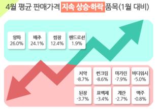 품목별로는 양파가 26.0%, 배추가 24.1%, 쌈장이 12.4% 올랐다.