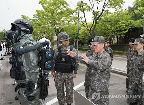 최 의장은 문성준 국군화생방방호사령관의 보고를 받고 "다량의 생화학무기를 보유한 북한군과 대치하는 우리 군은 위협에 대한 대응 태세를 한 시도 늦출 수 없다"고 강조했다.