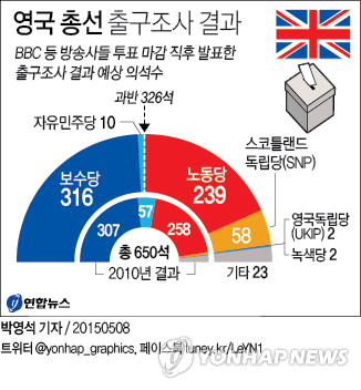 이날 출구조사 결과 SNP는 스코틀랜드 지역 의석 59석에서 단 1석을 뺀 58석을 차지할 것으로 예상됐다.
