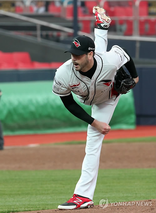 | △ 역투하는 케이티 선발투수 어윈 (수원=연합뉴스) 신영근 기자 = 8일 경기도 수원케이티위즈파크에서 열린 프로야구 케이티 위즈와 LG 트윈스의 경기에서 케이티 선발투수 어윈이 역투하고 있다. 2015.5.8 drops@yna.co.kr |