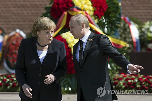 한편, 메르켈 총리는 회담에 앞서 푸틴 대통령과 함께 모스크바의 2차 세계대전 무명용사비를 찾아 헌화했다. 메르켈 총리는 전날 모스크바 붉은광장에서 치러진 2차대전 승전기념식에는 우크라이나 사태 등을 이유로 불참했다.