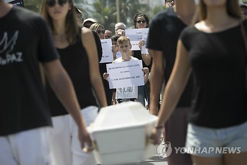 리우에서 활동하는 비정부기구(NGO) '평화의 리우'는 10대 사망자를 추모하고 폭력행위에 반대하는 시위를 벌였다.