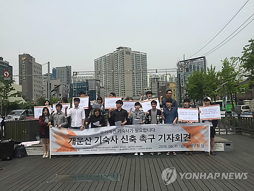 | △ (서울=연합뉴스) 설승은 기자 = 고려대 총학생회는 11일 서울 성북구청 앞에서 기자회견을 열어 환경보호를 이유로 한 인근 주민의 반대로 표류중인 교내 기숙사 신축 문제를 해결해 줄 것을 성북구청과 성북구의회에 촉구했다. 2015. 5. 11 ses@yna.co.kr |