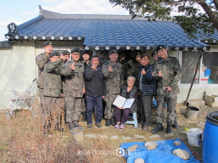 [부자동네타임즈 김민석기자]인제군 북면 월학2리에 거주하는 장달선씨가 최근(1. 6) 1군사령부 전장병들이 참여하는 FROKA 희망기금사업의 호국영웅으로 선정돼 연탄 1,300장 쿠폰을 증정받았다. 이날 증정식에는 12사단 신교대대장, 월학2리이장, 노인회장, 군장병 등이 참석해 쿠폰 증정과 함께 환경정비 봉사에 참여했다.