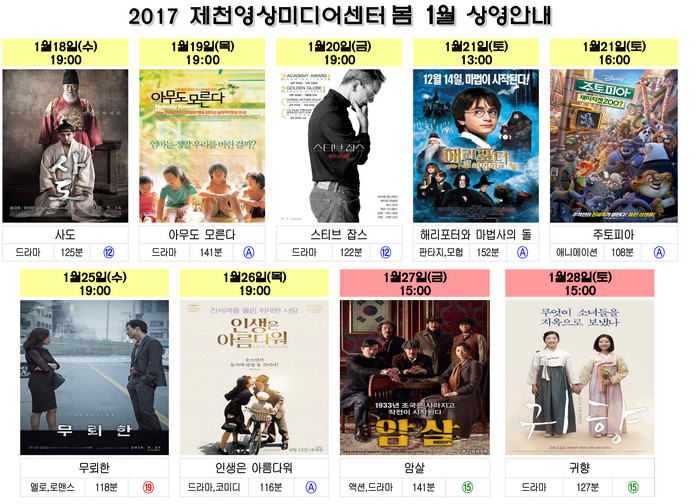[부자동네타임즈 이현진 기자]제천시는 제천영상미디어센터(이하 미디어센터)가 올 한해에도 보다 알찬 영화 상영 프로그램을 시민들에게 선보인다고 지난 17일 밝혔다.
