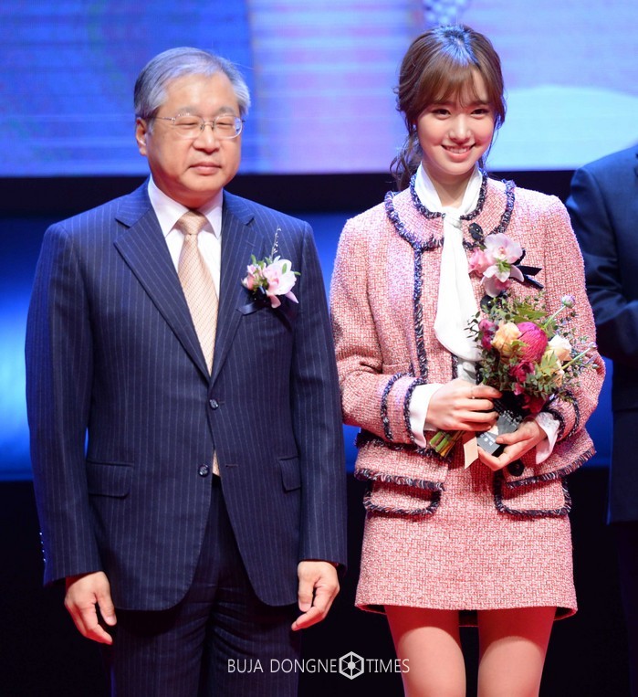 1일 오후 경기 과천시 과천시민회관 소극장에서 열린 '아름다운선거 홍보대사 위촉식'에서 김용덕 중앙선관위 위원장이 홍보대사 배우 진세연에게 위촉장을 수여한 뒤 기념촬영을 하고 있다. 2017.02.01