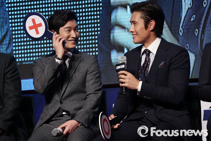 | △ 4일 오후 서울 송파구 롯데시네마 월드타워점에서 열린 영화 '내부자들' 흥행 쇼케이스 오픈 TALK 행사에 참석한 배우 조승우(왼쪽)와 이병헌이 마주보며 미소를 짓고 있다. <사진제공=포커스뉴스> |