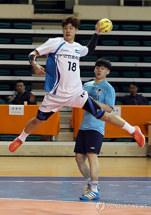 (서울=연합뉴스) 김동찬 기자 = 두산이 2015 SK 핸드볼 코리아리그 남자부 정규리그 1위에 성큼 다가섰다.