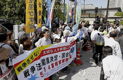 이날 오전 일본 도쿄도(東京都) 총리관저 주변에는 안보법제 정비에 반대하는 시민단체 관계자 약 500명(주최 측 추산)이 모여 시위를 벌였다.