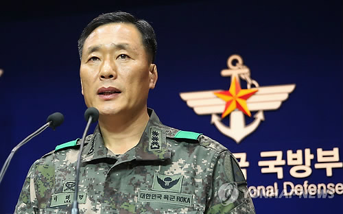 | △ 총기난사 사건 중간 수사결과 발표 (서울=연합뉴스) 한종찬 기자 = 육군 중앙수사단장 이태명 대령이 14일 오후 서울 용산 국방부에서 총기난사 사건 중간 수사결과를 발표하고 있다. |