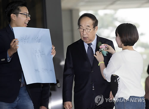 스승의 날 檢 출석 박용성 가슴에 '씁쓸한 카네이션'