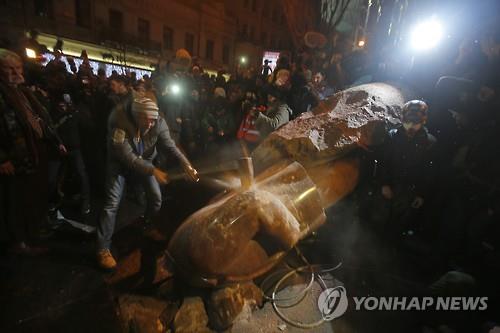 (키에프 AFP=연합뉴스) 페트로 포로셴코 우크라이나 대통령은 15일(현지시간) 옛 소련 시절의 상징물과 선전구호의 사용을 금지하는 법안을 제정했다.