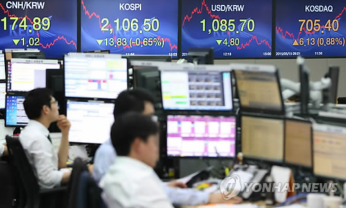 18일 오전 10시 24분 현재 코스피지수는 전 거래일보다 0.34포인트(0.02%) 내린 2,106.16을 나타냈다.