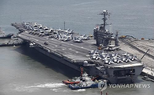 교도통신에 따르면 요코스카 미군 기지에는 로널드 레이건 원자력 항모가 이르면 올가을 교대 배치될 예정이다.