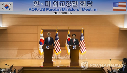 | △ 한·미 외교장관 공동 기자회견 (서울=연합뉴스) 전수영 기자 = 윤병세 외교부 장관과 존 케리 미국 국무장관이 18일 오후 서울 외교부 청사 국제회의장에서 공동 기자회견을 하고 있다. |