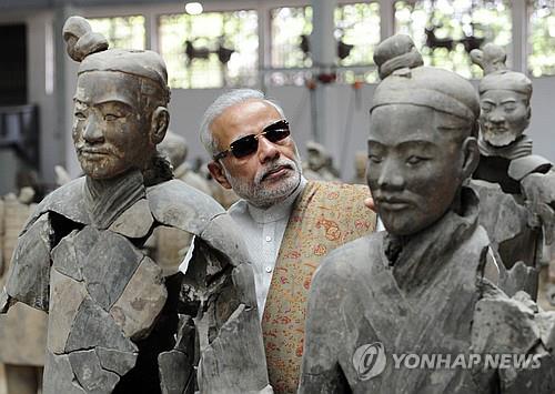 영국 BBC는 18일(현지시간) 기사에서 모디 총리의 이 '병마용 사진'이 이번 중국·인도 정상회담의 가장 큰 '부산물'로 떠올랐다고 전했다.