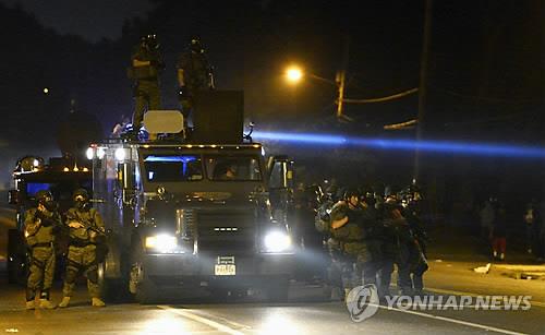당시 백인 경관의 비무장 흑인 사살 사건으로 계기로 퍼거슨에서 대규모 시위가 발생하자 경찰은 연막탄, 최루탄은 물론 섬광 수류탄, 소총, 군용트럭, 장갑차까지 갖춘 모습으로 시위 진압에 나섰다.