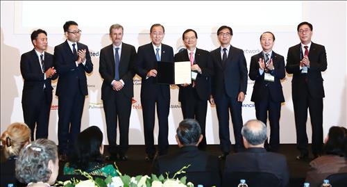 이날 서울 여의도 콘래드호텔에서 열린 가입 기념식에는 반기문 유엔 사무총장과 유엔 및 거래소 관계자들이 참석했다.