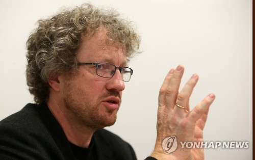 | △ 토마스 헬룸 노르웨이 국영 방송국 PD (서울=연합뉴스) 양지웅 기자 = 토마스 헬룸 노르웨이 국영 방송국 NRK 프로듀서가 19일 서울 동대문디자인플라자에서 연합뉴스와 인터뷰를 갖고 있다. 2015.5.19 yangdoo@yna.co.kr |