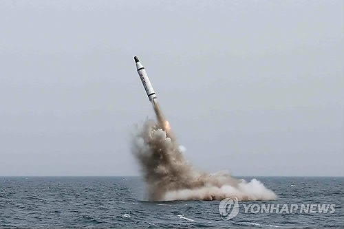 | △ 발사되는 북한 전략잠수함 탄도탄 (평양 조선중앙통신=연합뉴스 자료사진) |