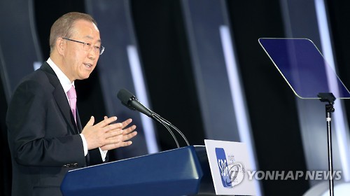 | △ 반기문 유엔 사무총장 축사 (서울=연합뉴스) 백승렬 기자 = 반기문 유엔 사무총장이 20일 서울 동대문디자인프라자에서 열린 서울디지털포럼 2015 개회식에서 축사하고 있다. |