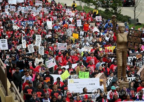 캔자스시티에서 동료들과 버스를 빌려타고 왔다는 데럴 밀러(35)는 "현재 지급받는 시간당 7.75달러(약 8천 원) 임금으로는 공과금 납부도 버겁다. 자유로운 삶은 커녕 생활을 유지하기도 힘들다"고 하소연했다.