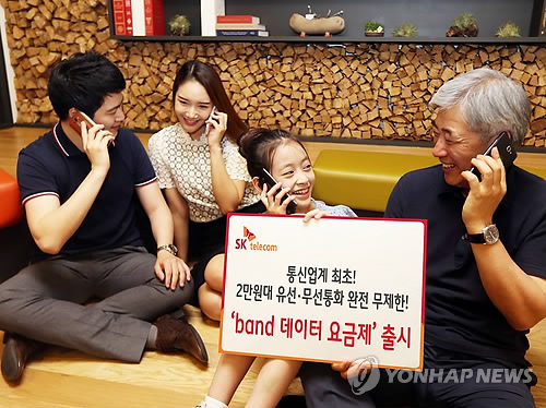 (서울=연합뉴스) 한지훈 기자 = SK텔레콤[017670]은 월 2만원대 요금부터 유·무선 음성 통화와 문자를 무제한 제공하는 '밴드 데이터 요금제' 가입자가 출시 첫날 15만명을 돌파했다고 21일 밝혔다.