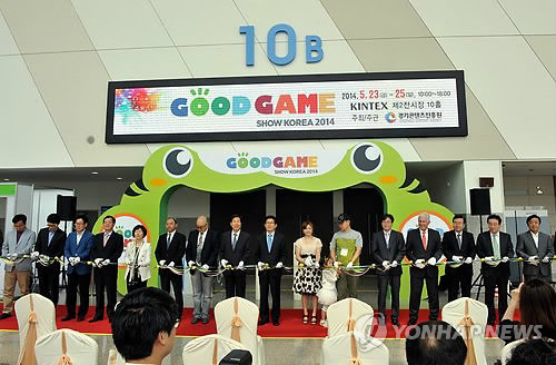 | △ "기능성 게임 신기하네"…굿 게임쇼 코리아 개막 (수원=연합뉴스) 경기콘텐츠진흥원이 주최하는 '굿 게임쇼 코리아 2014'가 23일 경기도 고양시 일산 킨텍스 제2전시장 10홀에서 개막했다. 김문수 경기지사 등 게임업계 관계자들이 개막식에서 테이프 커팅을 하고 있다. 2014.5.23 <<지방기사 참고>> hedgehog@yna.co.kr |